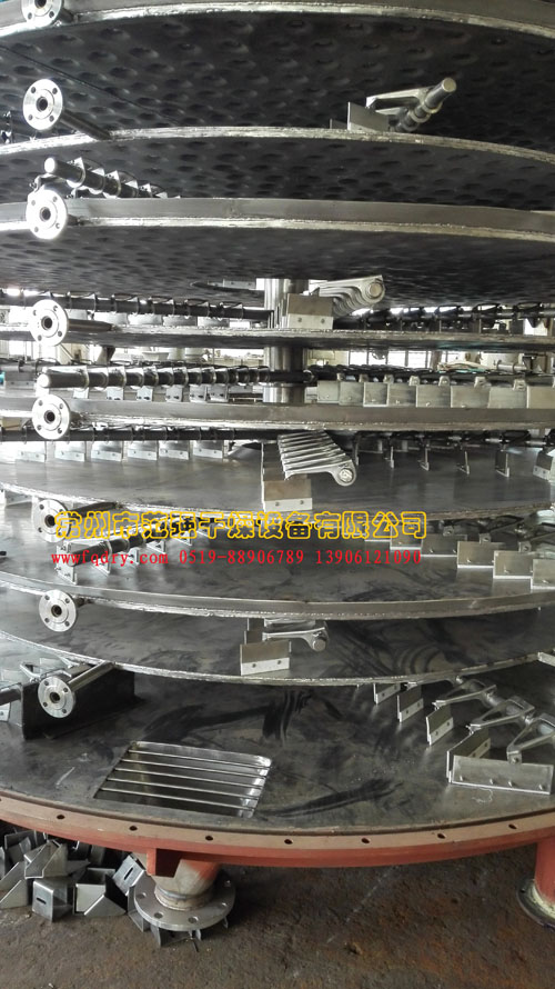 盤式連續干燥機PLG系列真空盤式連續干燥機是一種高效的傳導型連續干燥設備。其獨特的結構和工作原理決定了它具有熱功當量效率高、能耗低、占地面積小、配置簡單、操作控制方便、操作環境好等特點,廣泛適用于化工、醫藥、農藥、食品、飼料、農副產品加工等行業的干燥作業。在各行業使用實踐中深受好評。現生產制造常壓、密閉、真空三大類型。1200、1500、2200、3000四各規格,S(碳鋼)、B(接觸物料部分均勻不銹鋼)、C(在B的基礎上,增加蒸汽管路,主軸及支架為不銹鋼,筒體和頂蓋內襯不銹鋼)。三種材質、干燥面積4-180M2,共幾百種型號的系列產品,并能提供與之相配套的種子選手輔助設備,可滿足用戶對各種物料進行干燥的需要。 設備特點: PLG系列真空盤式連續干燥機濕物料自加料器連續地加到盤式干燥機上部第一層干燥盤上,帶有耙葉的耙臂作回轉運動使耙葉連續地翻抄物料。物料沿指數螺旋線渡過干燥盤表面,在小干燥盤上的物料被移送到外緣,并在外緣落到下方的大干燥盤外緣,在大干燥塔上物料向里移動并從中間落料口落入下一層小干燥盤中。大小干燥盤上下交替排列,物料得以連續地流過整個干燥器。中空的干燥盤內通入加熱介質,加熱介質形式有飽和蒸汽、熱水和導熱油,加熱介質由干燥盤的一端進入,從另一端導出。已干物料從盤式干燥機最后一層干燥盤落到殼體的底層,最后被耙葉移送到出料口排出。濕份從物料中逸出。由設在頂蓋上的排濕口排出,真空型盤式干燥器的濕氣由設在頂蓋上的真空泵抽出。從底層排出的干物料可直接包裝。通過配加翅片加熱器、溶劑回收冷凝器、袋式除塵器、干料返混木結構、引風機等輔機,可提高其干燥的生產能力,干燥膏糊狀和熱敏性物料,可方便地回收溶劑,并能進行熱解和反應操作。 (一)調控容易、適用性強 通過調整料層厚度、主軸轉速、耙臂數量、耙葉型蕘尺寸可使干燥過程達到******。 盤式干燥機每層干燥盤皆可單獨通入熱介質或冷介質,對物料進行加熱或冷卻,物料溫度控制準確、容易。 物料的停留時間可以精確調整。 盤式干燥機物料流向單一、無返混現象,干燥均勻,質量穩定,不需要混合。 (二)操作簡單、容易 盤式干燥機的開車、停車操作非常簡單。 停止進料后,傳送物料垢耙葉能很快地排空干燥器內的物料。 盤式干燥機通過特殊性的大規格檢視門的視鏡,可以對設備內進行很仔細的清洗和觀察。 (三)能耗低 料層很薄,主軸轉速低,物料供關這系統需要的功率小,電耗少。 盤式干燥機以傳導熱進行干燥,熱效率高,能量消耗低。 (四)操作環境好,可回收溶劑,粉塵排放符合要求 常壓型:由于設備內氣流速度低,而且設備內濕度頒布上高下低,粉塵很難浮到設備頂部,所以頂部排溫口排出的尾氣的尾氣中幾乎不含有粉塵。 密閉型:配備黨溶劑回收裝置,可方便地回收載濕氣體中的有機溶劑。溶劑回收裝置簡單,回收率謝,對于易燃、易爆、有毒和易氧化的物料,可用氮氣作為載濕氣體進行半路循環,使之安全操作。特別適用于易燃、易爆、有毒物料的干燥。 (五)安裝方便、占地面積小 盤式干燥機整體出廠,整體運輸,只需吊裝就位,安裝定位非常容易。 由于干燥盤層立式布置,立式安裝,既使干燥面積很大,占地面積也很小 技術參照表: