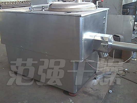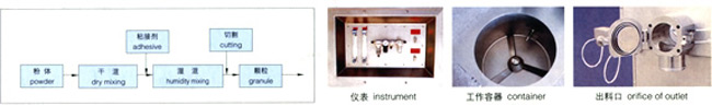 粉體物料與粘合劑在圓筒形容器中由底部混合漿充分混合成濕潤軟材,然后由側置的高速粉碎槳切割成均勻的濕顆粒。